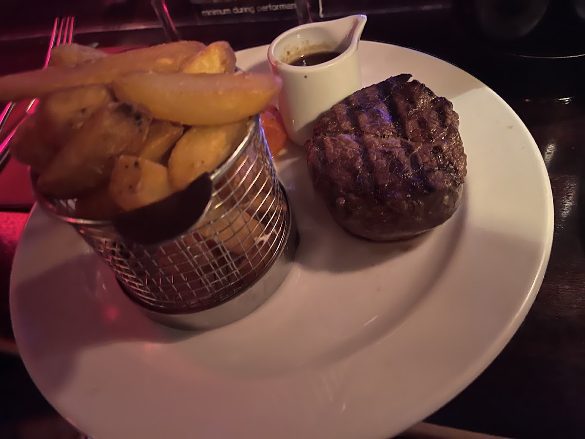 Upstairs at Ronnie’s carries a casual confidence that welcomes all, from those looking to lose themselves in the music to friends catching up over a drink. The bar serves up classic cocktails—like a well-made Old Fashioned—that complement the rich, textured sounds filling the air. And when hunger strikes, you’ll find hearty options like a perfectly cooked Rib Eye Steak that ground the experience in comfort without overshadowing the main attraction.